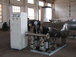 该设备由稳流灌、真空消除器、倒流防止器、变频控制柜、水泵、压力传感器及配套阀门、管线组成。当市政自来水管网供水量大于系统出水量时,设备进入正常工作状态,自来水进入增压装置,通过压力传感器和变频控制系统调节水泵运行台数。使水压恒定在设置值,保证用户水量水压。当自来水管网供水量小于系统出水量时,灌内水位逐渐步降低,稳流灌内压力也随之降低,此时三重防负压功能启动,保证系统不产生负压,以防止对市政管网的干扰和水泵空转,来水恢复正常时,设备自动恢复运行。当市政自来水的压力可以满足用户需要时,水泵停止运转,水由旁路直供系统直接到达用户,以最大限度地节省能源。。